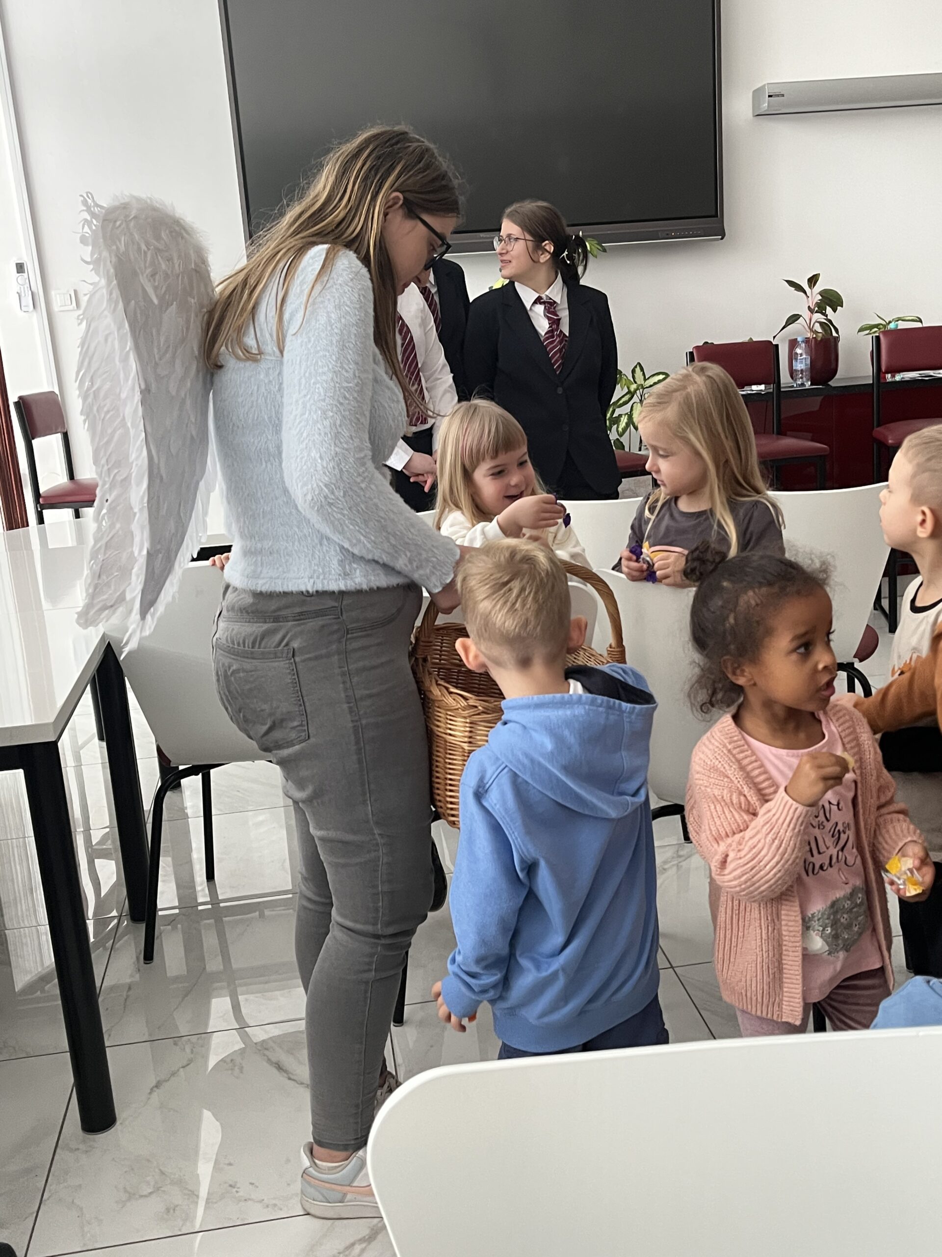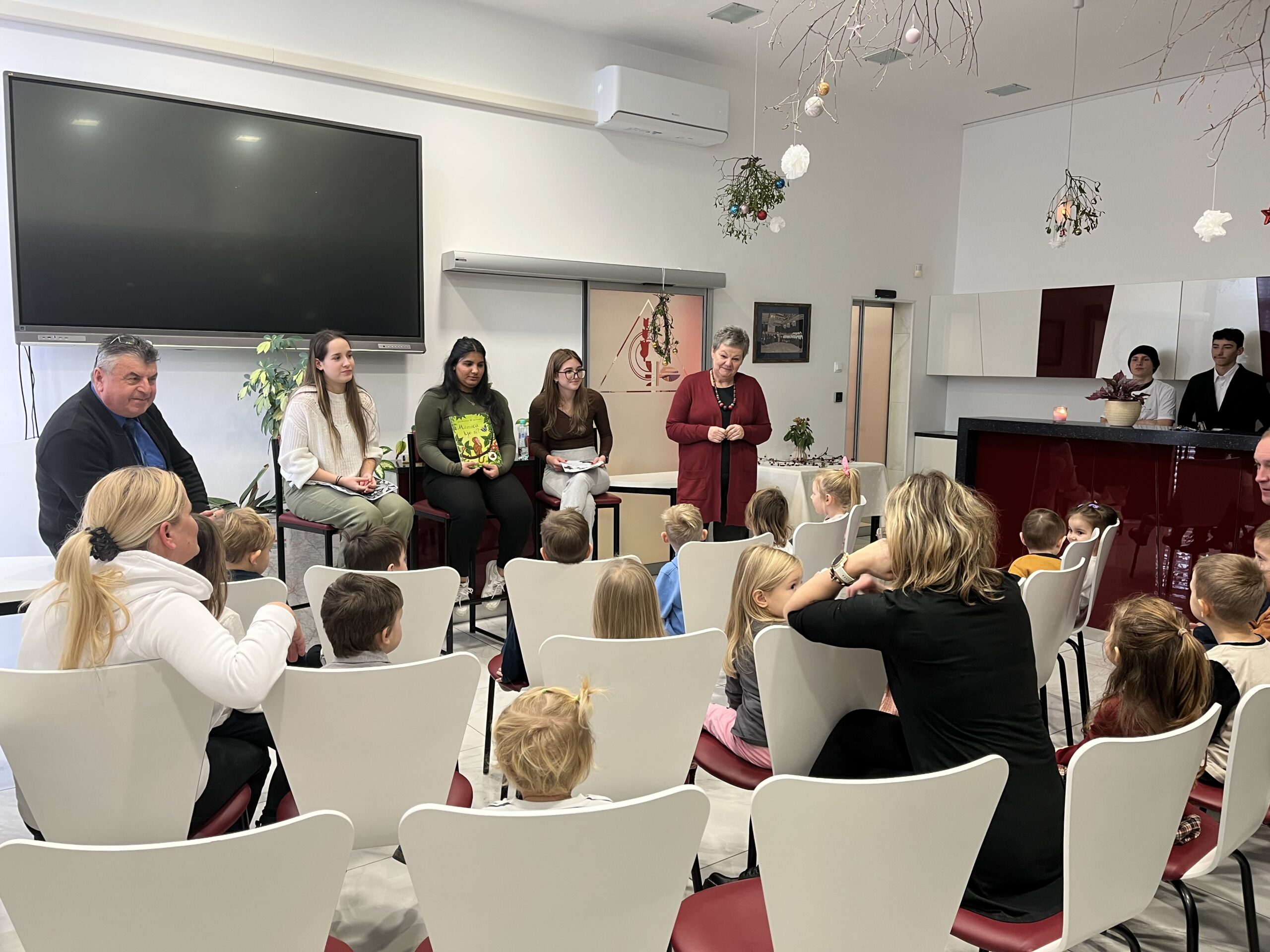 Otroci skupine »zabavni smrkci« smo bili povabljeni na obisk v Srednjo šolo za gostinstvo in turizem. Pričakali so nas z izjemnim programom ter pogostitvijo. Počutje vseh nas, je bilo navdušujoče ter polno presenečenj. Kot gostje smo bili deležni poslušanja zgodbice, ki so jo pripravile dijakinje smer turizma, postreženi smo bili kot »mini« princese in princi s čajem ter koruznim prigrizkom nakar nas je čakalo presenečenje. Opazovali smo nenavadno peko palačink, ki jo je izvedel prof. Peter Pertoci. Naše brbončice pa smo razvajali tudi s slastnimi palačinkami. Ko smo mislili, da je programa za nas konec, nas je čakalo še eno presenečenje in sicer prihod Miklavža. Vsi smo so se ga zelo zelo razveselili. Za tako lepo izkušnjo in gostoljubnost smo neizmerno hvaležni celotni ekipi SŠGT Radenci, ki je za nas pripravila res nepozaben dan.
