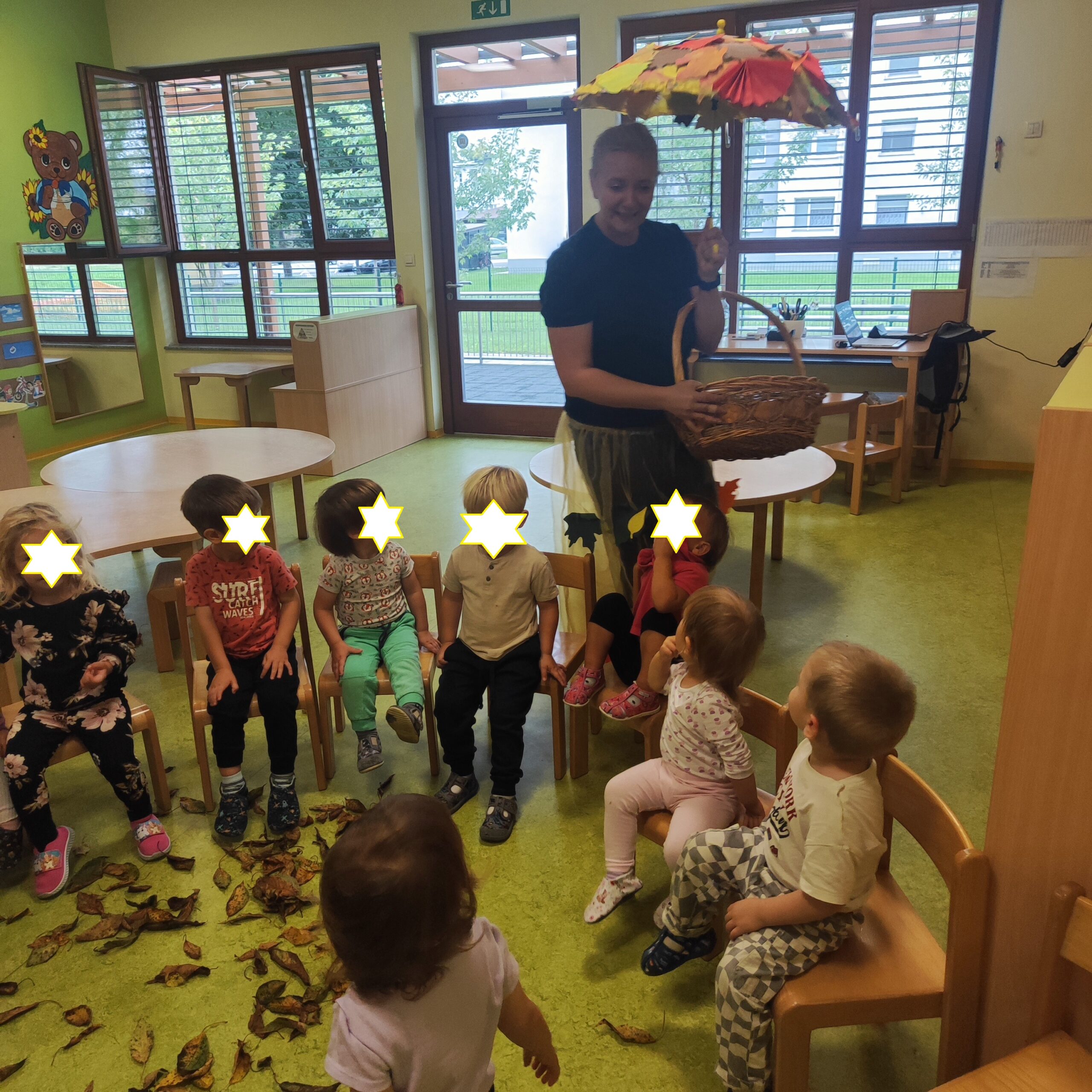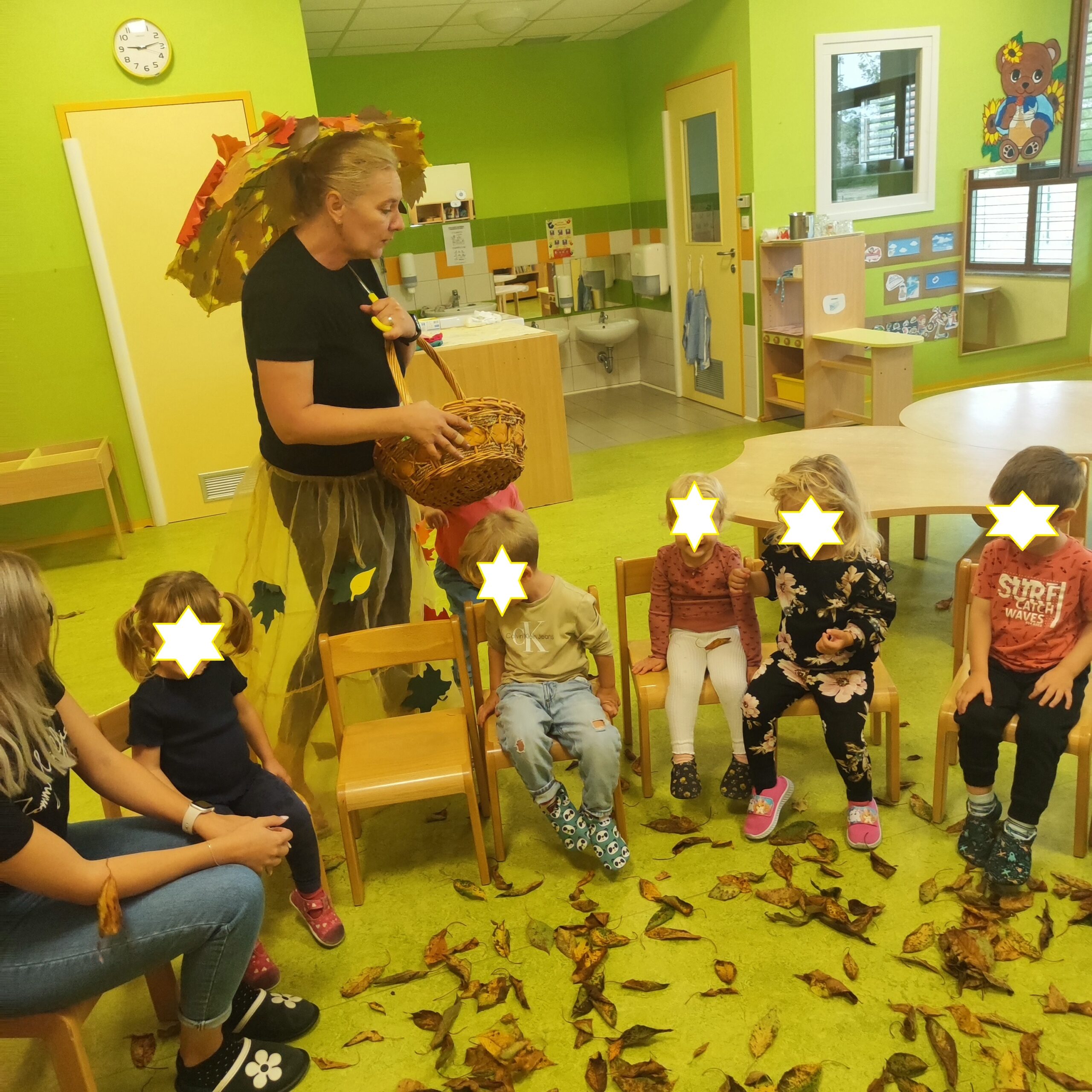 Obenem smo z radovednostjo in veseljem pozdravili tudi prvi jesenski dan. Z otroki smo raziskovali jesenske barve in plodove, ustvarjali iz naravnih materialov ter skupaj zapeli jesenske pesmi. Na ta način smo naravo doživljali z vsemi čutili in jo sprejeli kot našo najlepšo učilnico.Skozi oboje smo otrokom približali pomen povezanosti z naravo, gibanja in zdravega načina življenja.